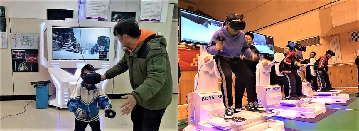 河北易县西山北中心小学是全省108所全国青少年校园冰雪运动特色学校之一,2019年9月,政府出资为该校配置了5台VR滑雪模拟器,它们的雪道场景是按狼牙山滑雪场的初级、中级、高级道设计的,学生们可以在上面掌握滑雪安全知识和动作要领,等到去狼牙山滑雪场滑雪时,对雪场的雪道情况已经了如指掌。